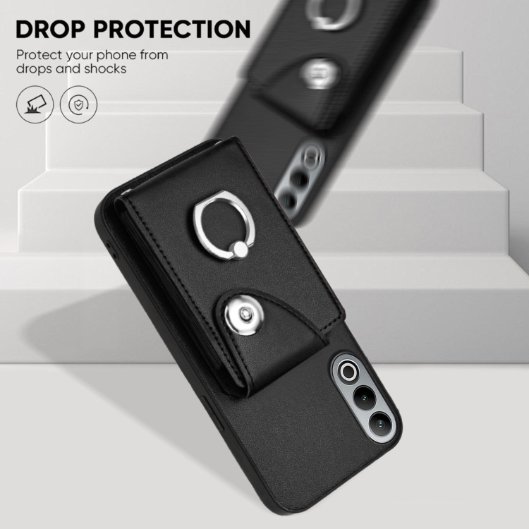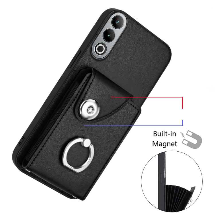 Funda de Teléfono PU con Tarjetero y Anillo para OnePlus Nord CE4 (Negra)