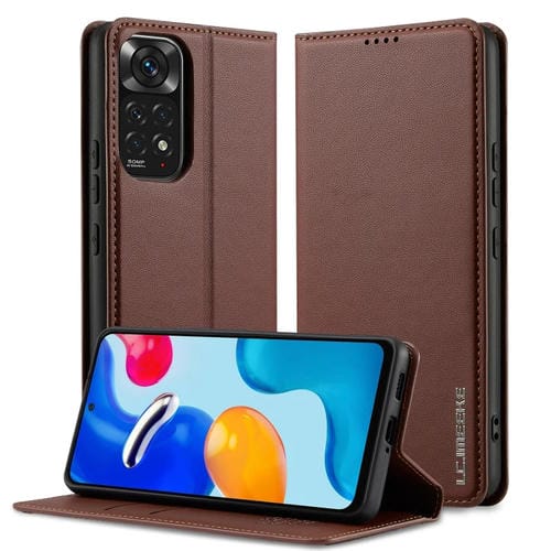 Funda de Teléfono de Pu con Textura Fina Esmerilada para Redmi Note 11 Pro 5G Lc.Imeeke L1 Series (Marrón)