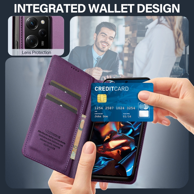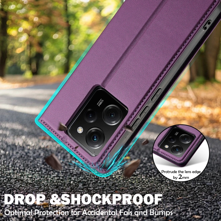 Funda de Teléfono de Pu con Textura Fina Esmerilada para Redmi Note 12 5G Lc.Imeeke L1 Series (Morado)