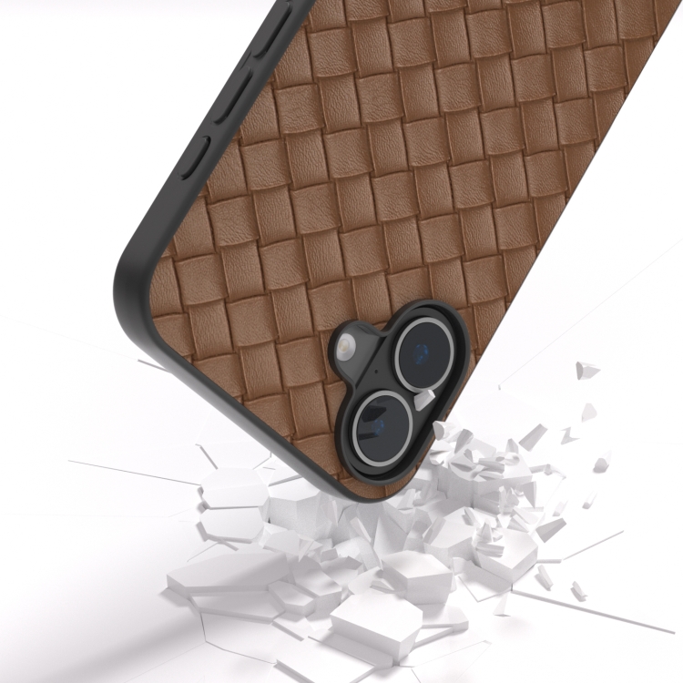 Funda de Teléfono PU con Textura Tejida y Marco Negro para iPhone 16 Plus (Marrón)