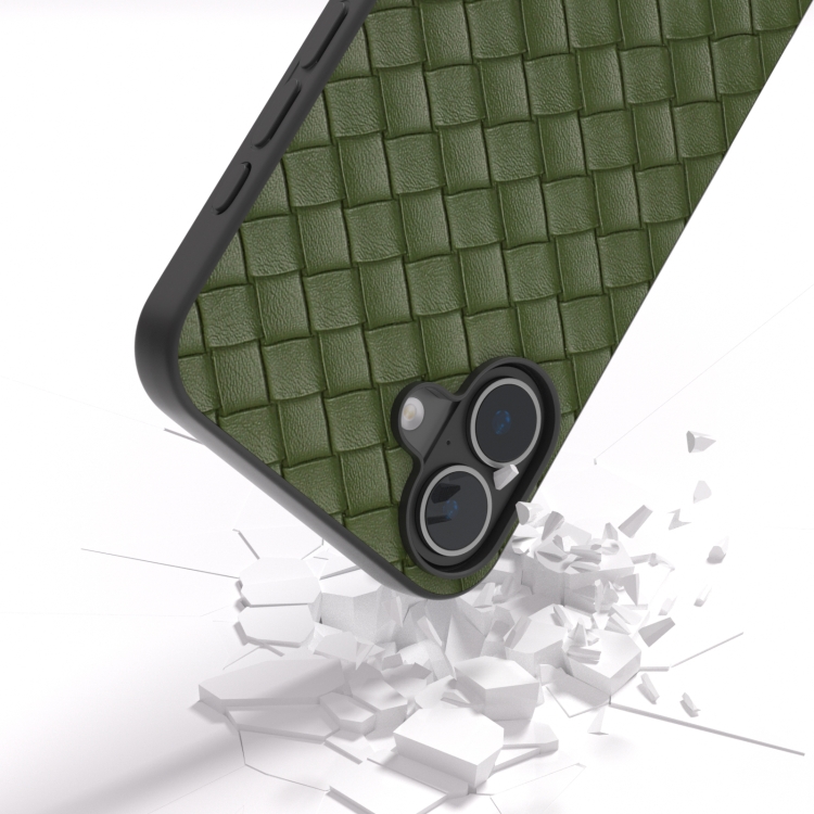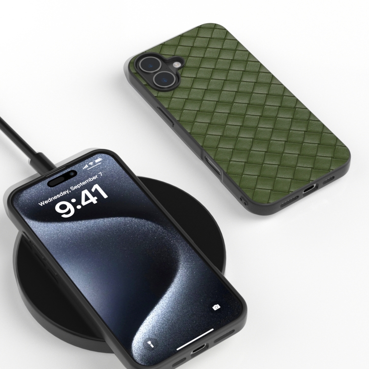 Funda de Teléfono Pu Textura Tejida Marco Negro para iPhone 16 Plus (Verde)