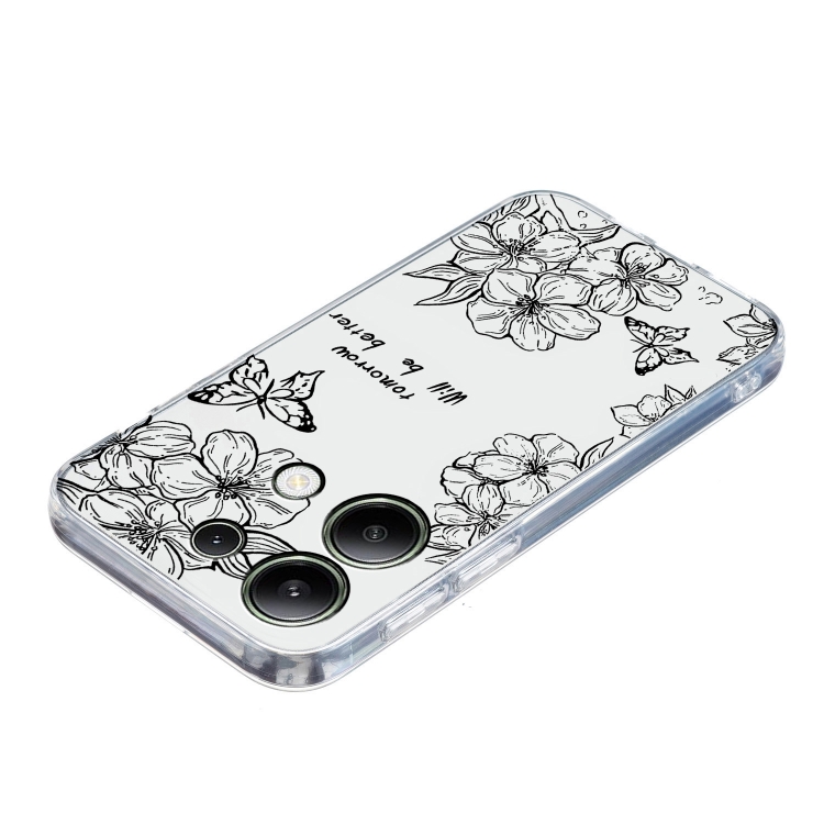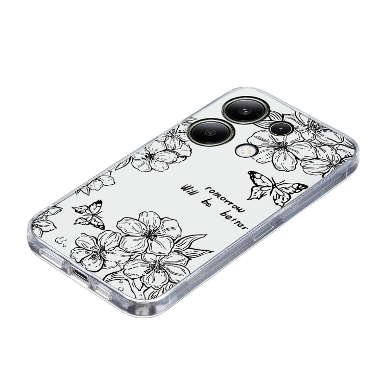 Funda de Teléfono de TPU con Patrón de Pintura Colorida para Redmi Note 13 4G (Mariposa y Flores)