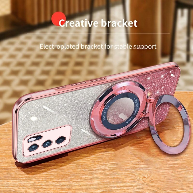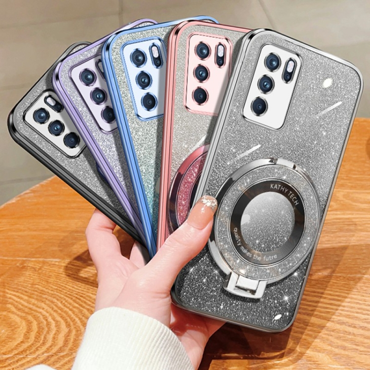 Funda de Teléfono de TPU con Soporte Redondo con Purpurina Degradada Plateada para Oppo Reno6 Pro 5G (Morado)