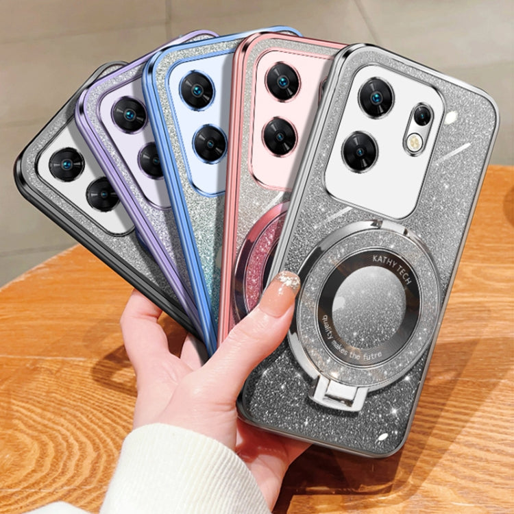 Funda TPU con Soporte Redondo y Purpurina Degradada para Infinix Zero 30 4G (Negra)