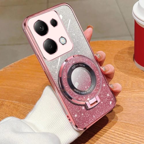 Funda de Teléfono de TPU con Soporte Redondo y Purpurina Degradada Chapada para Redmi Note 13 Pro 4G (Rosa)