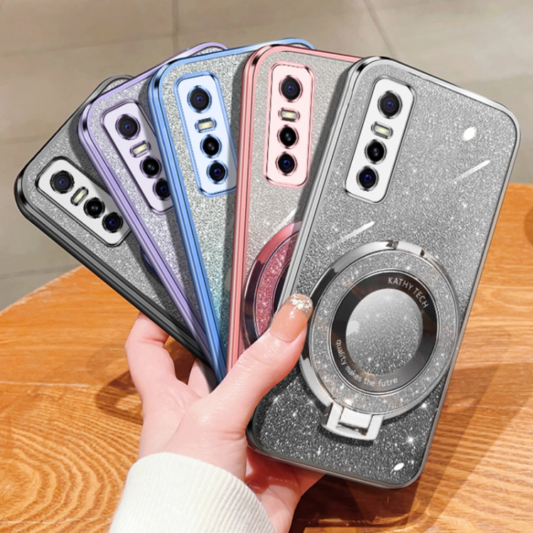 Funda de Teléfono de TPU con Soporte Redondo y Purpurina Degradada Chapada para Vivo Y73S/S7E 5G (Azul Sierra)