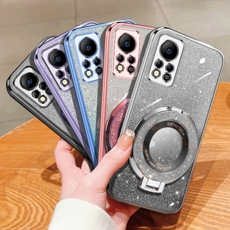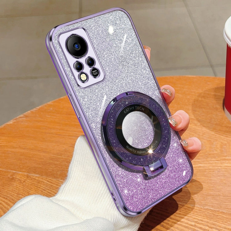 Funda de TPU con Soporte Redondo y Purpurina Degradada Revestimiento NFC para Infinix Hot 11S (Morado)