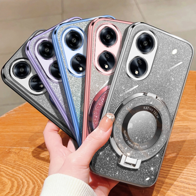 Funda de Teléfono de TPU con Soporte Redondo y Purpurina Degradada para Oppo A1 5G/A98 4G (Azul Sierra)