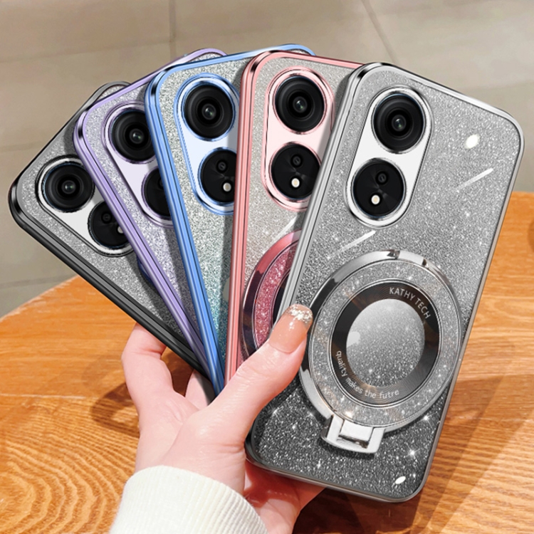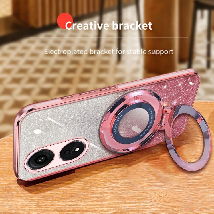 Funda de Teléfono de TPU con Soporte Redondo y Purpurina Degradada para Oppo A1 Pro/Reno8 T 5G (Azul Sierra)