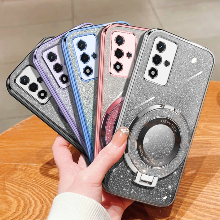 Funda de Teléfono de TPU con Soporte Redondo y Purpurina Degradada para Oppo A93S 5G (Rosa)
