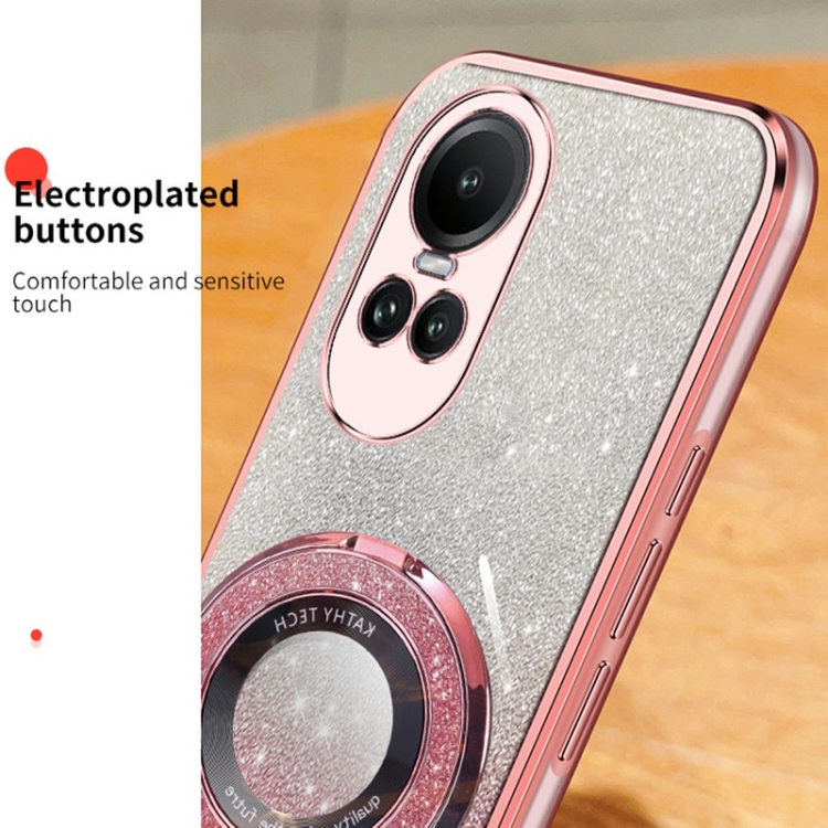 Funda de Teléfono de TPU con Soporte Redondo y Purpurina Degradada para Oppo Reno10 Global (Azul Sierra)