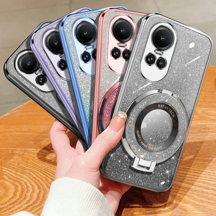 Funda de Teléfono de TPU con Soporte Redondo y Purpurina Degradada para Oppo Reno10 Pro (Rosa)
