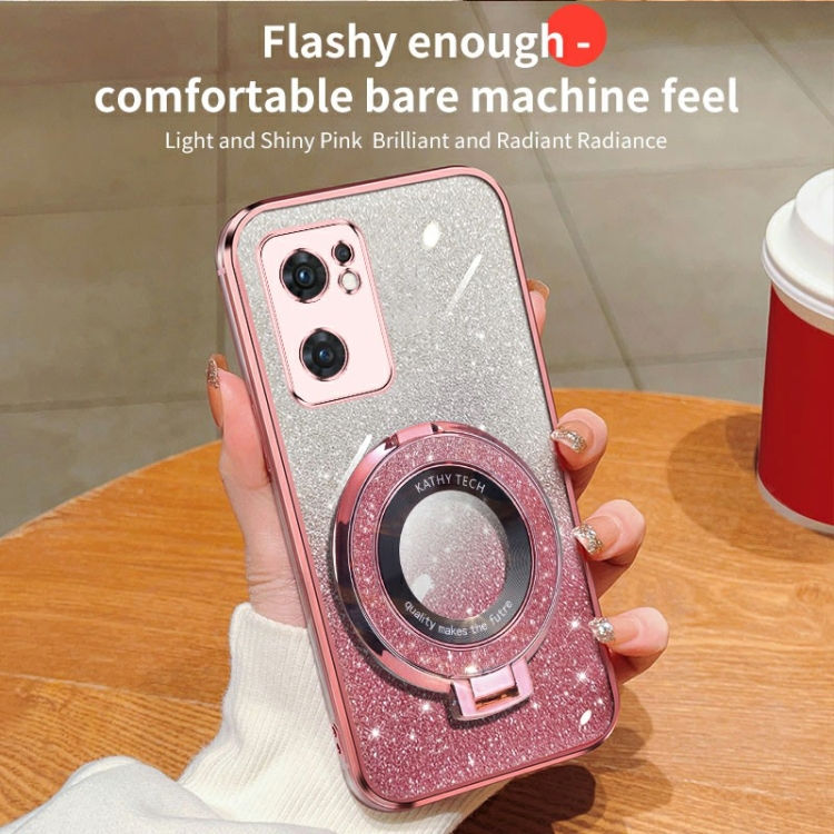 Funda de Teléfono de TPU con Soporte Redondo y Purpurina Degradada para Oppo Reno7 Global (Azul Sierra)