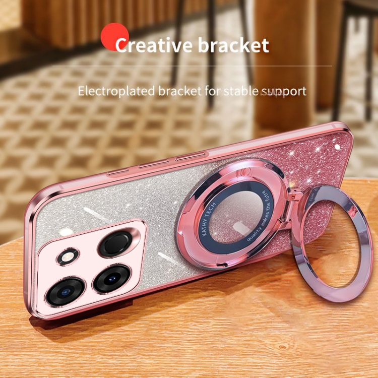 Funda de Teléfono TPU con Soporte Redondo y Purpurina Degradada para Tecno Pop 7 Pro/Pop 7 (Azul Sierra)