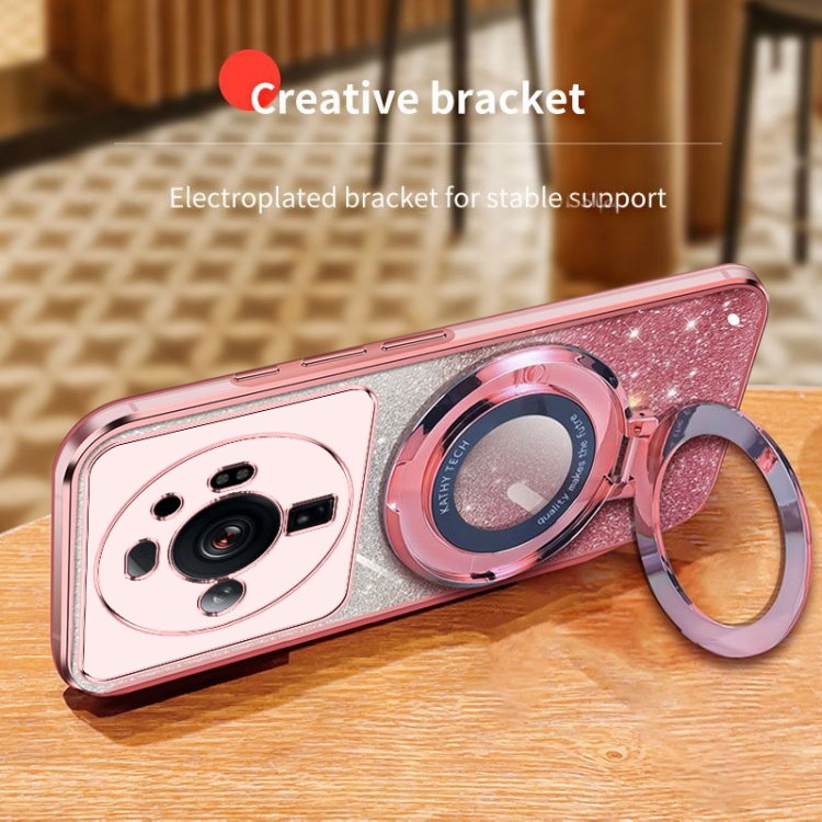 Funda de Teléfono de TPU con Soporte Redondo y Purpurina Degradada para Xiaomi 12S Ultra (Rosa)