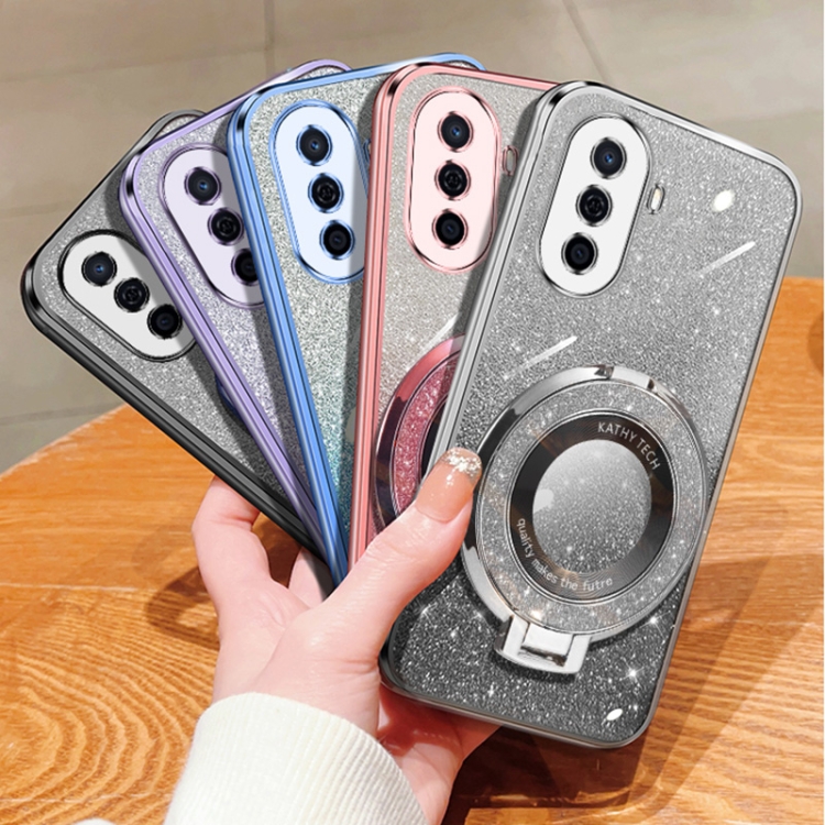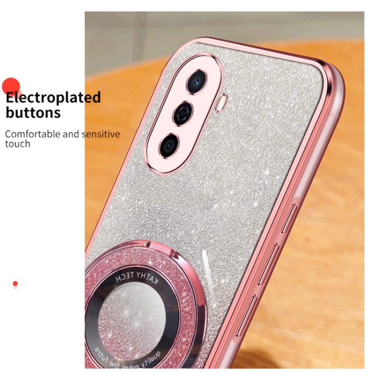 Funda de TPU con Soporte Redondo y Purpurina para Huawei Enjoy 50/Nova Y70 (Rosa)