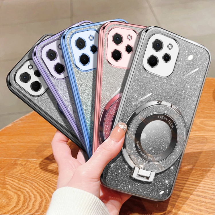 Funda de TPU con Soporte Redondo y Purpurina para Huawei Enjoy 50Z Nova Y61 (Plateada)