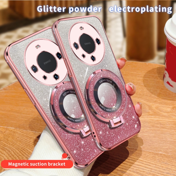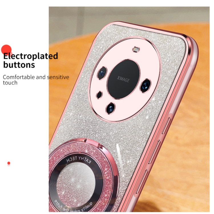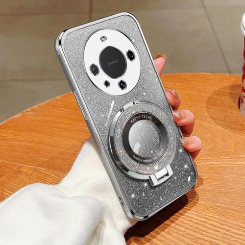 - 1x Funda TPU con Soporte Redondo y Purpurina Degradada para Huawei Mate 60 Pro / 60 Pro+ (Plateada)
