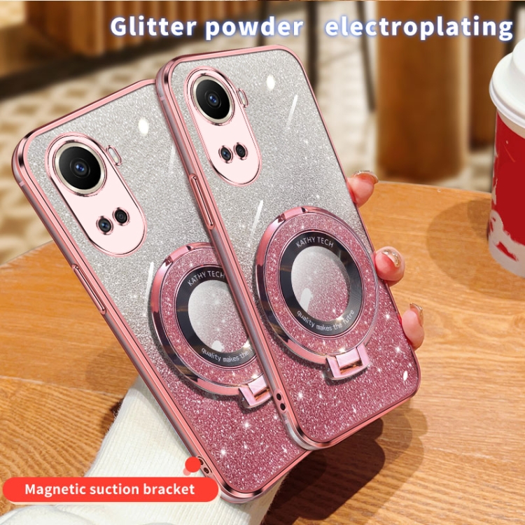 Funda TPU con Soporte Redondo y Purpurina para Huawei Nova 10 Se (Plateada)