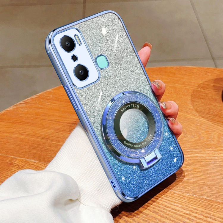 Funda TPU con Soporte Redondo y Purpurina Degradada para Infinix Hot 20 Play (Azul Sierra)