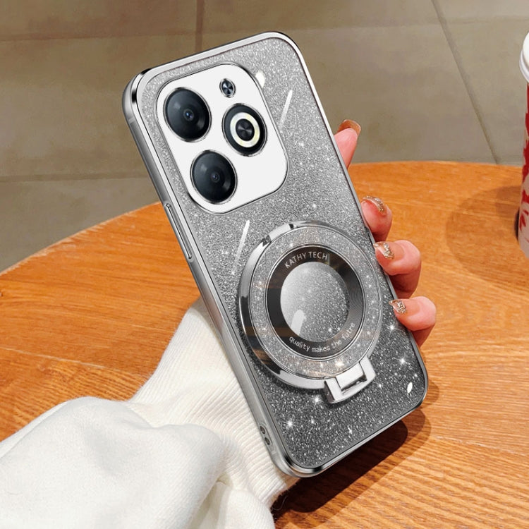 Funda de Teléfono TPU con Soporte Redondo y Purpurina Degradada para Infinix Hot 40I (Plateada)