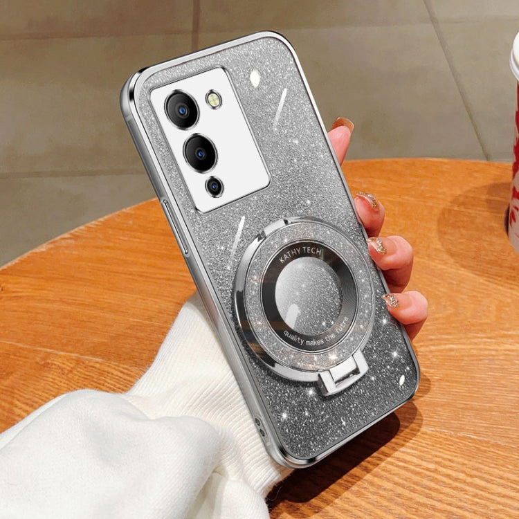 Funda de TPU con Soporte Redondo y Purpurina Degradada para Infinix Note 12 G96 (Plateada)