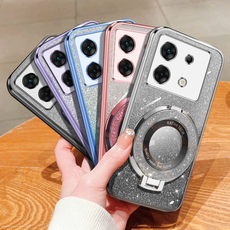 Funda de TPU con Soporte Redondo y Purpurina para Infinix Zero 30 5G (Plateada)