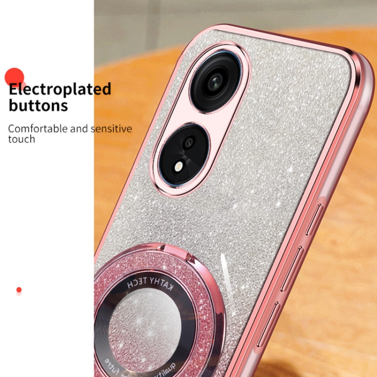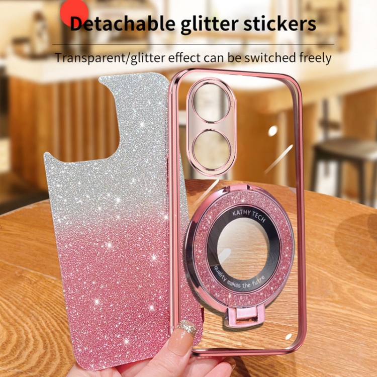 Funda de Teléfono de TPU con Soporte Redondo y Purpurina Degradada Plateada para Oppo A1 Pro/Reno8 T 5G (Plateada)