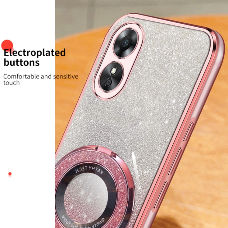 Funda de Teléfono de TPU con Soporte Redondo y Purpurina Degradada Plateada para Oppo A17 (Negro)