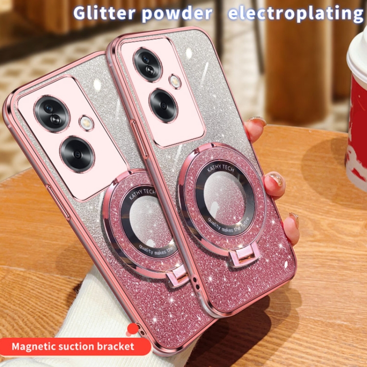 Funda de Teléfono de TPU con Soporte Redondo y Purpurina Degradada Plateada para Oppo A2 5G/A79 (Azul Sierra)