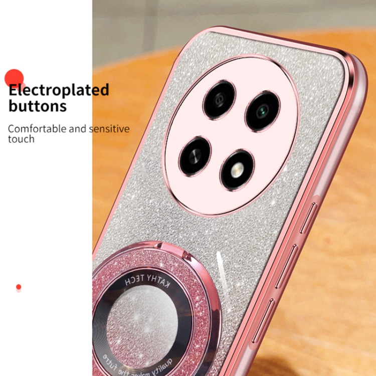 Funda de Teléfono de TPU con Soporte Redondo y Purpurina Degradada Plateada para Oppo A2 Pro (Negro)