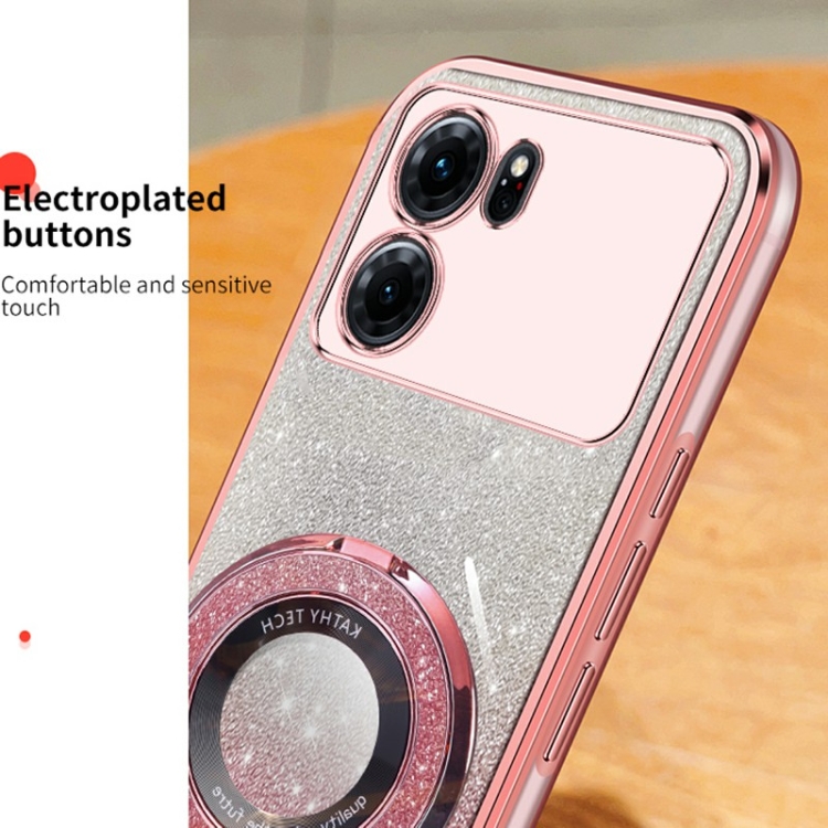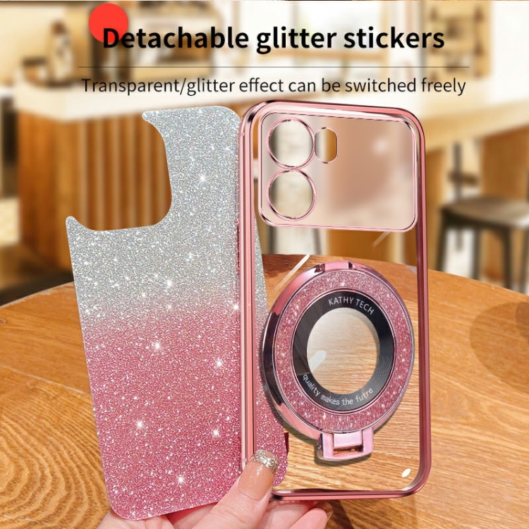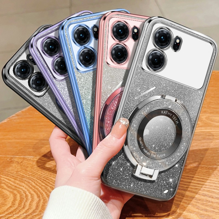 Funda de Teléfono de TPU con Soporte Redondo y Purpurina Degradada Plateada para Oppo K10 (Morado)