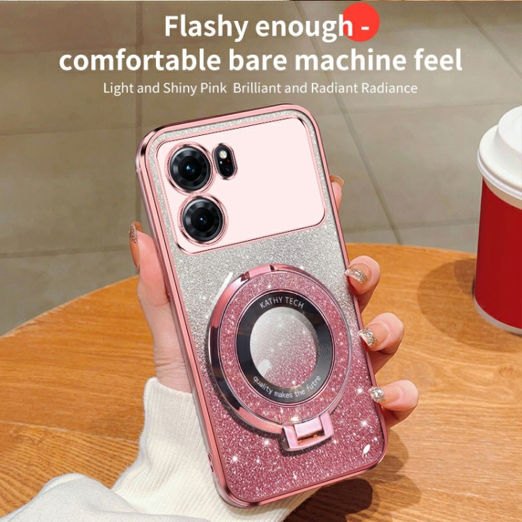 Funda de Teléfono de TPU con Soporte Redondo y Purpurina Degradada Plateada para Oppo K10 (Plateada)