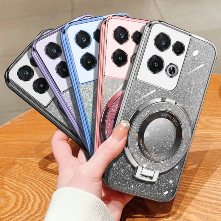 Funda de Teléfono de TPU con Soporte Redondo y Purpurina Degradada Plateada para Oppo Reno8 Pro (Plateada)