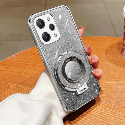 Funda de Teléfono de TPU con Soporte Redondo y Purpurina Degradada Plateada para Redmi 12 4G (Plateada)