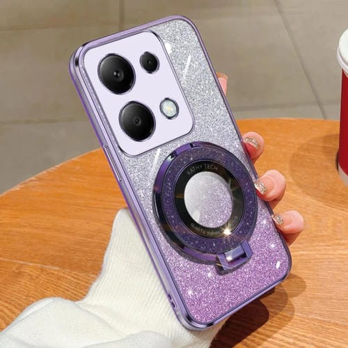 Funda de Teléfono de TPU con Soporte Redondo y Purpurina Degradada Plateada para Redmi Note 13 Pro 4G (Morado)
