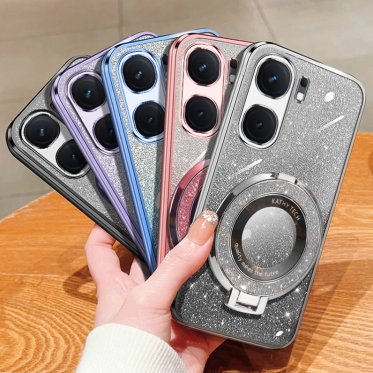 Funda de Teléfono de TPU con Soporte Redondo y Purpurina Degradada Plateada para Vivo Iqoo Neo9 (Negro)