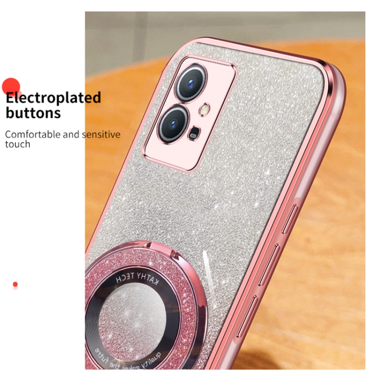 Funda de Teléfono de TPU con Soporte Redondo y Purpurina Degradada Plateada para Vivo Y33S 5G/Y75 (Negra)