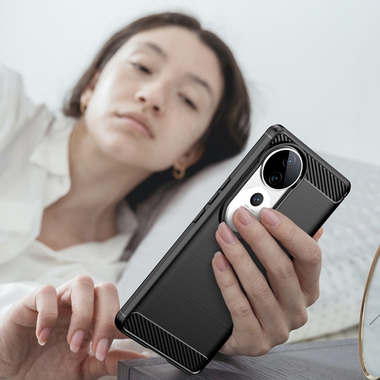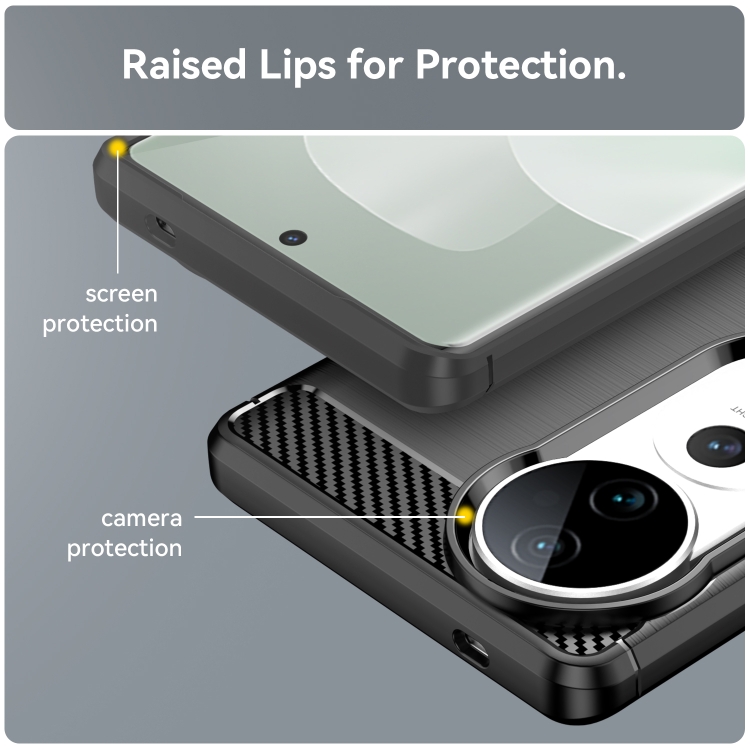 Funda de Teléfono de TPU con Textura Cepillada de Fibra de Carbono para Vivo V40 5G (Negra)