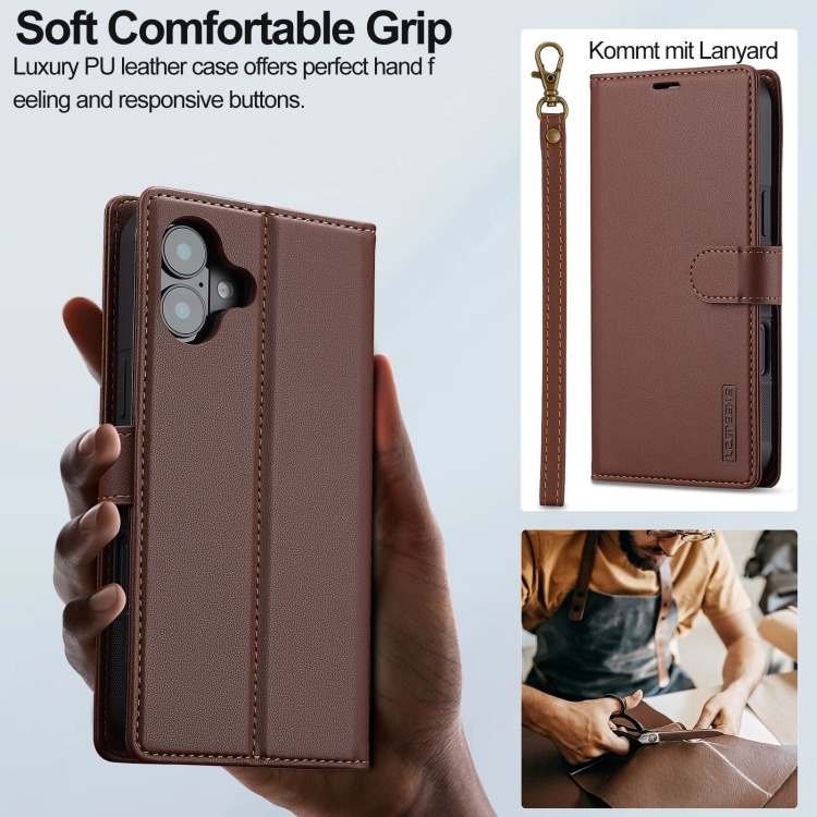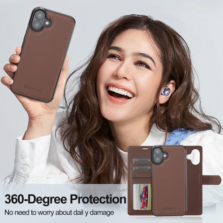 Funda de Teléfono Desmontable PU Magsafe con Cordón para iPhone 16 Lc.Imeeke L2 Series (Marrón)