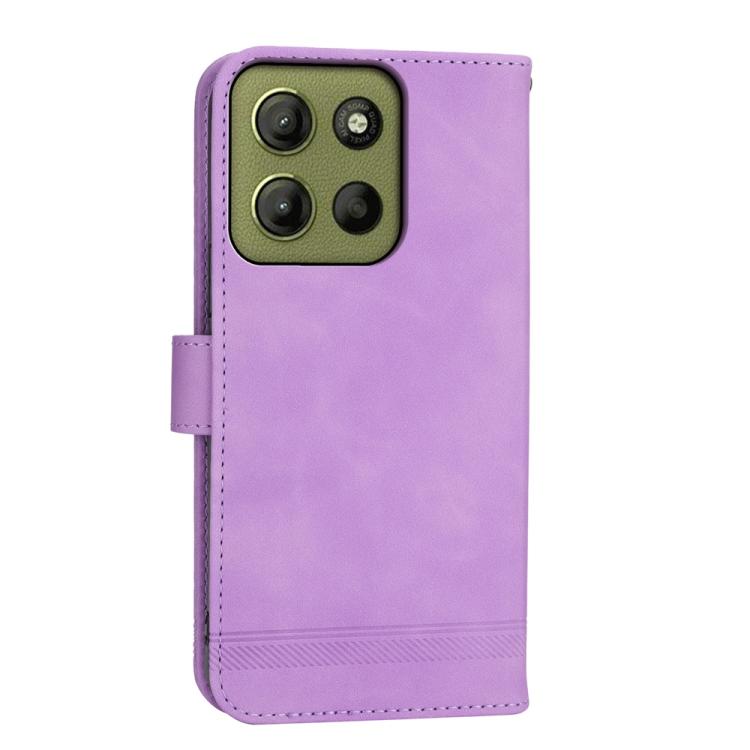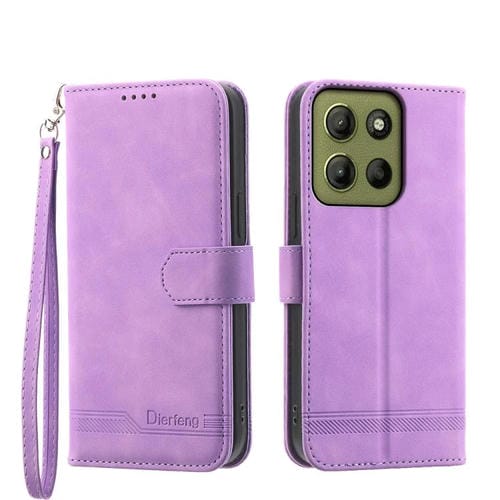 Funda híbrida Cuero PU y TPU Dierfeng Dream Line para Motorola Moto G15 (Morado)