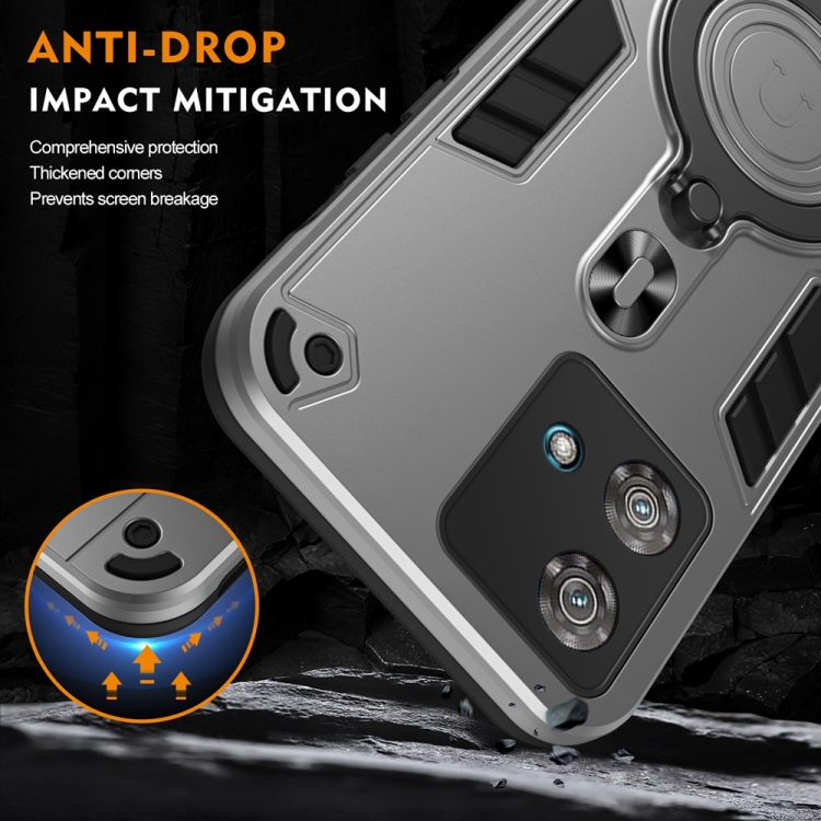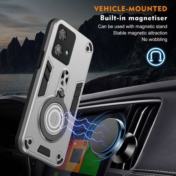 Funda Teléfono Híbrida TPU y PC con Soporte Giratorio 360° y Anillo Metal para Motorola Edge 40 Neo (Gris Plateado)
