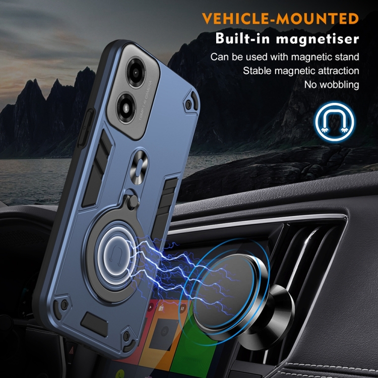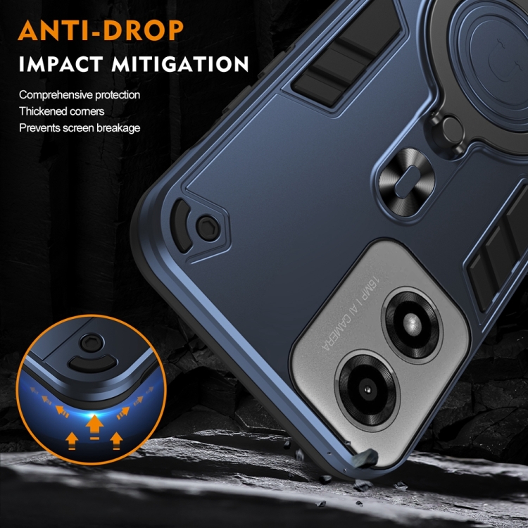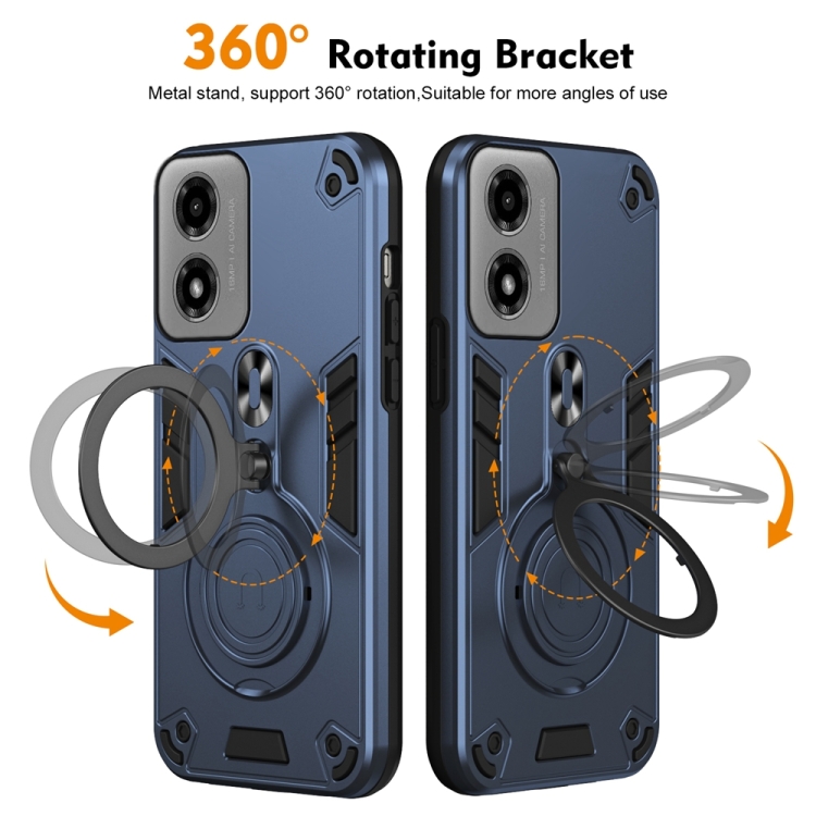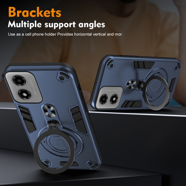 Funda híbrida TPU y PC Motorola Moto G04/G24 con soporte giratorio 360° y anillo metal (Azul Marino)