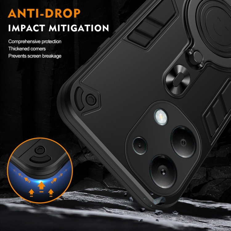 Funda de Teléfono Híbrida de TPU y PC con Soporte Giratorio de 360 Grados y Anillo de Metal para Redmi Note 13 Pro 4G (Negro)