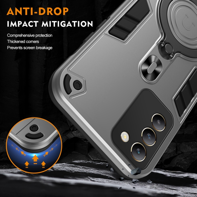 Funda de Teléfono Híbrida de TPU y PC con Soporte Giratorio de 360 Grados y Anillo de Metal para Vivo Y100 Idn (Gris Plateado)