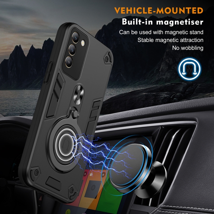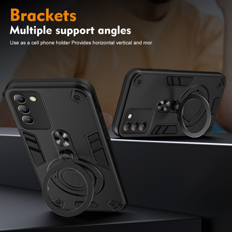 Funda de Teléfono Híbrida de TPU y PC con Soporte Giratorio de 360 Grados y Anillo de Metal para Vivo Y100 Idn (Negro)
