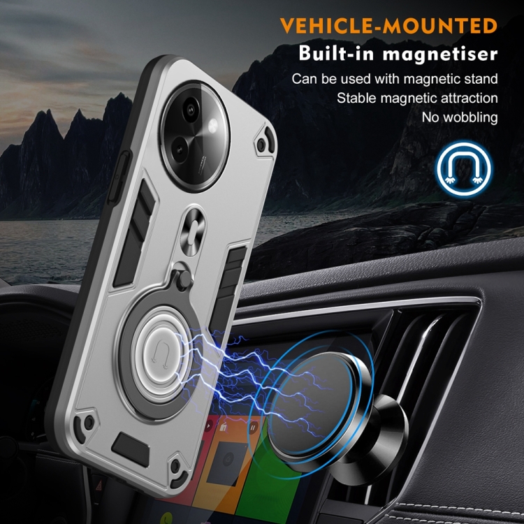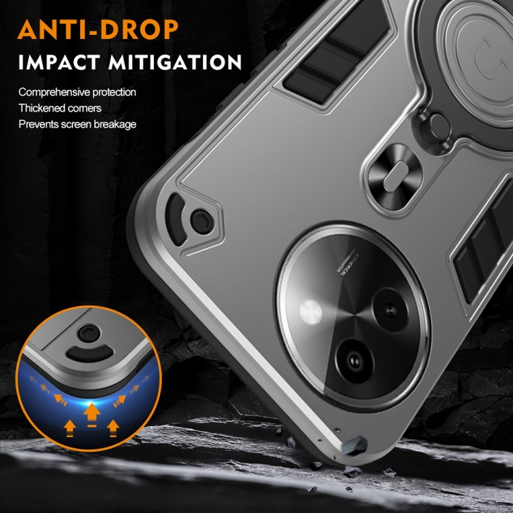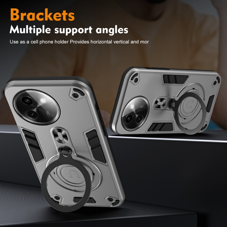 Funda de Teléfono Híbrida de TPU y PC con Soporte Giratorio de 360 Grados y Anillo de Metal para Vivo Y200I (Gris Plateado)