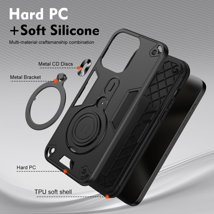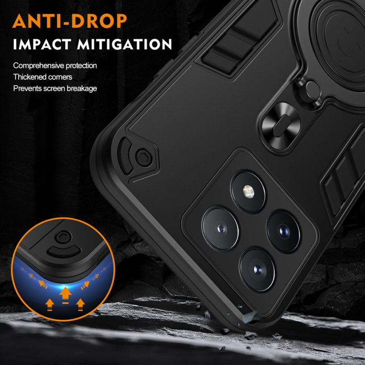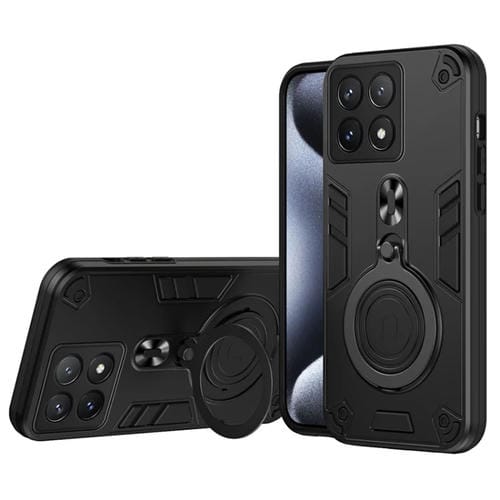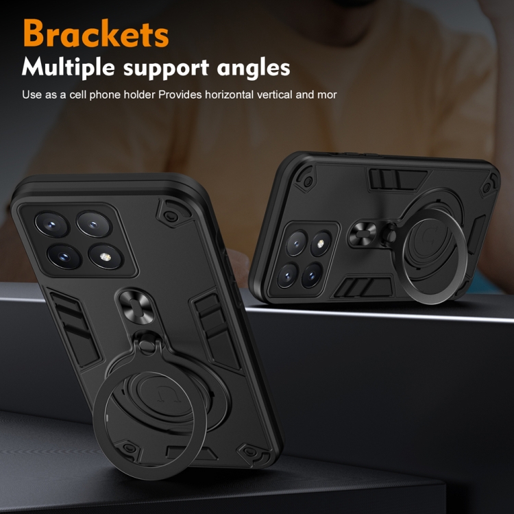 Funda de Teléfono Híbrida de TPU y PC con Soporte Giratorio de 360 Grados y Anillo de Metal para Xiaomi Poco X6 Pro 5G (Negro)