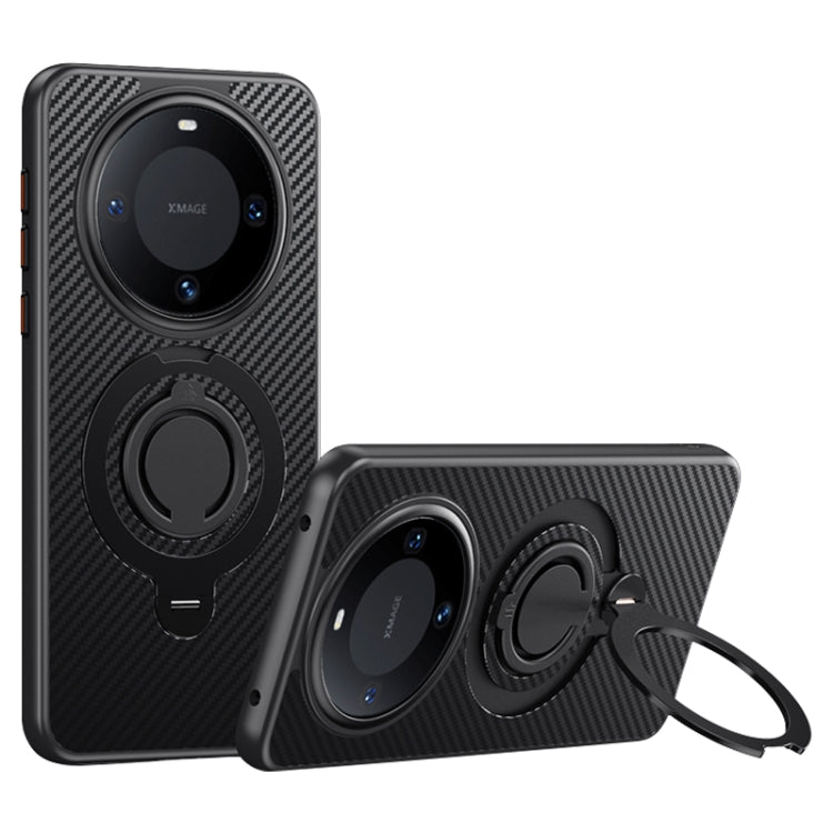 Funda Magsafe Fibra de Carbono con Soporte Giratorio 360° para Huawei Mate 60 Pro/60 Pro+ (Negra)
