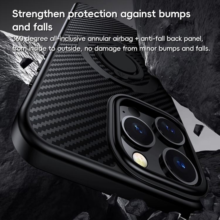 Funda de Teléfono Magsafe Fibra de Carbono iPhone 16 Pro Soporte Giratorio 360 (Negro)
